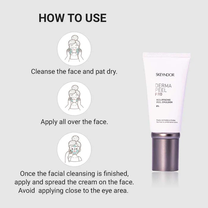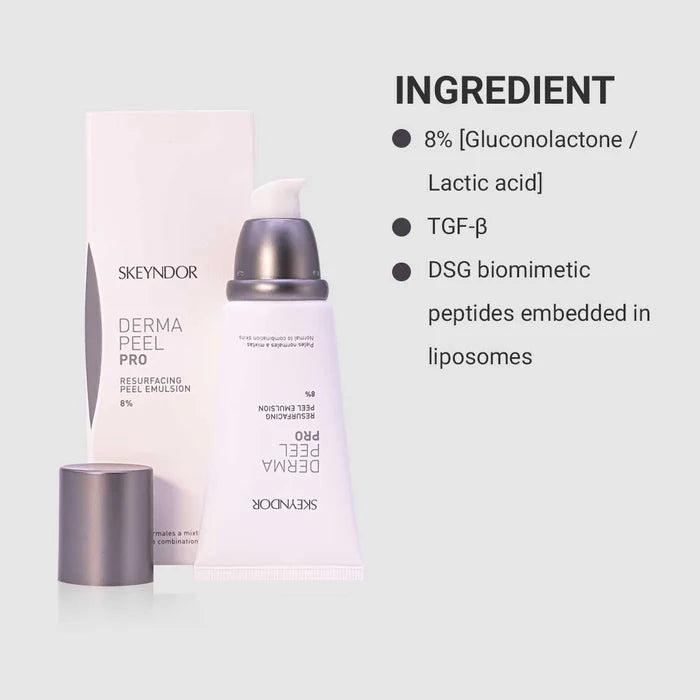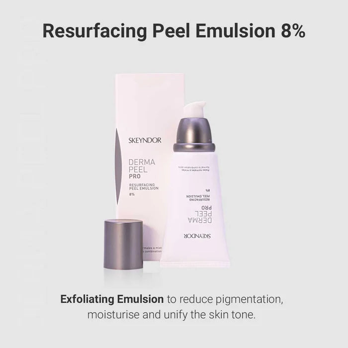 Experience the power of professional exfoliation with the Derma Peel Resurfacing Peel Emulsion. This advanced skincare product by Skeyndor is formulated to effectively remove dead skin cells, diminish the appearance of dark spots and hyperpigmentation, and reveal a smoother and more even complexion. The emulsion contains a blend of potent ingredients that work synergistically to resurface the skin and promote cellular turnover. With regular use, you can achieve a revitalized, youthful-looking complexion. Suitable for all skin types, the Derma Peel Resurfacing Peel Emulsion is a must-have addition to your skincare routine.