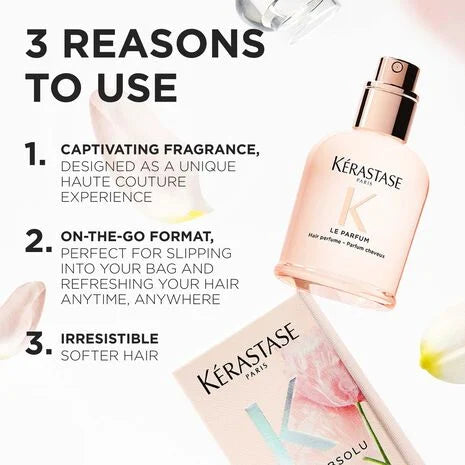 Introducing Gloss Le Parfum by Kérastase, the hair perfume that captures the mesmerizing scent of Gloss Absolu. Designed to leave a long-lasting trail* wherever you go.