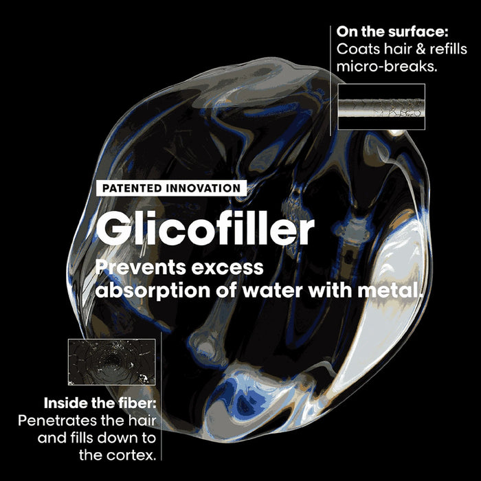 Through daily aggressions, micro-breaks multiply on the hair surface & cavities occur in the cortex. Discover Metal DX pre-shampoo treatment, which includes Anti-porosity1 technology to treat hair when it is most vulnerable to water: before the shampoo. Concentrated with 2% Glicofiller, an active that has a dual effect on both surface & cortex, to prevent excess absorption of water with metal and control hair breakage.