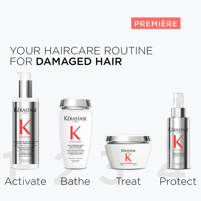 Kerastase Premiere Masque Filler Reparateur is a luxurious hair mask meticulously designed to address a myriad of hair concerns, from damage caused by processing to overexposure to environmental stressors. Formulated with cutting-edge technology, it penetrates deep into the hair shaft, replenishing lost moisture and nutrients while fortifying the hair structure from within. Infused with a potent blend of ingredients such as Peptide to accelerate hair growth and strengthen and protect hair from damage, and Glycine to repair and thicken damaged hair and prevent breakage.